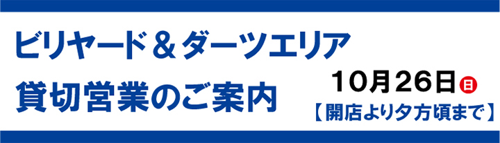 貸切営業のご案内【ビリヤード&ダーツエリア】 10月26日 日曜日