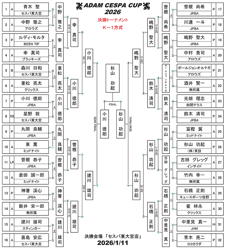 ↑ ベスト8:ジュリアン・セラディラ プロ(JPBA) |