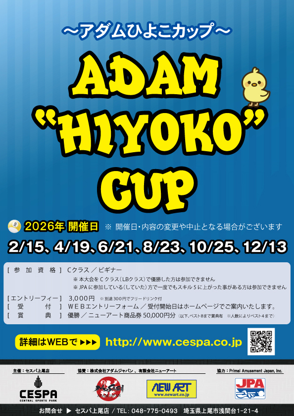 本大会は株式会社アダムジャパン様、NEWART様にスポンサードして頂いており、JPA様ご協力のもと開催されています。